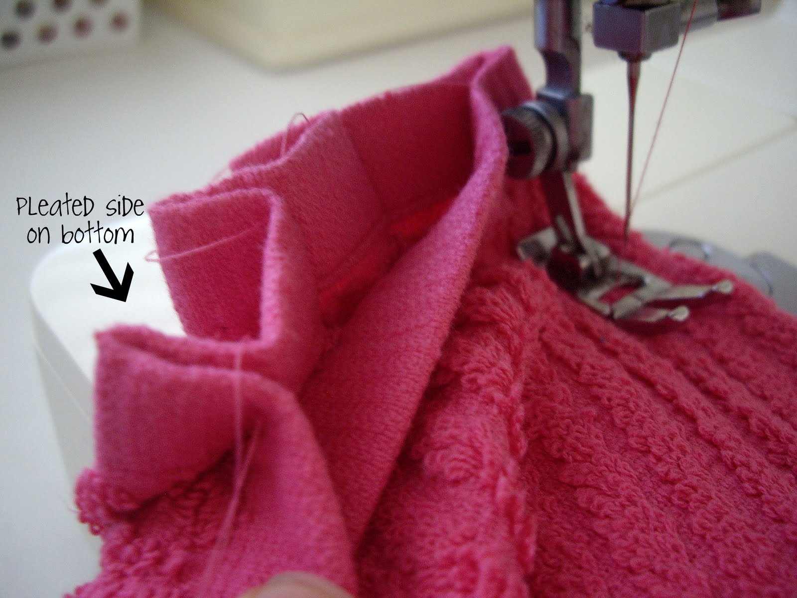 Fold the towel behind itself again, and sew another straight line down.