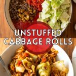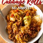 It’s a deconstructed version of the classic with ground beef, tender cabbage and fluffy rice all made in one pan!